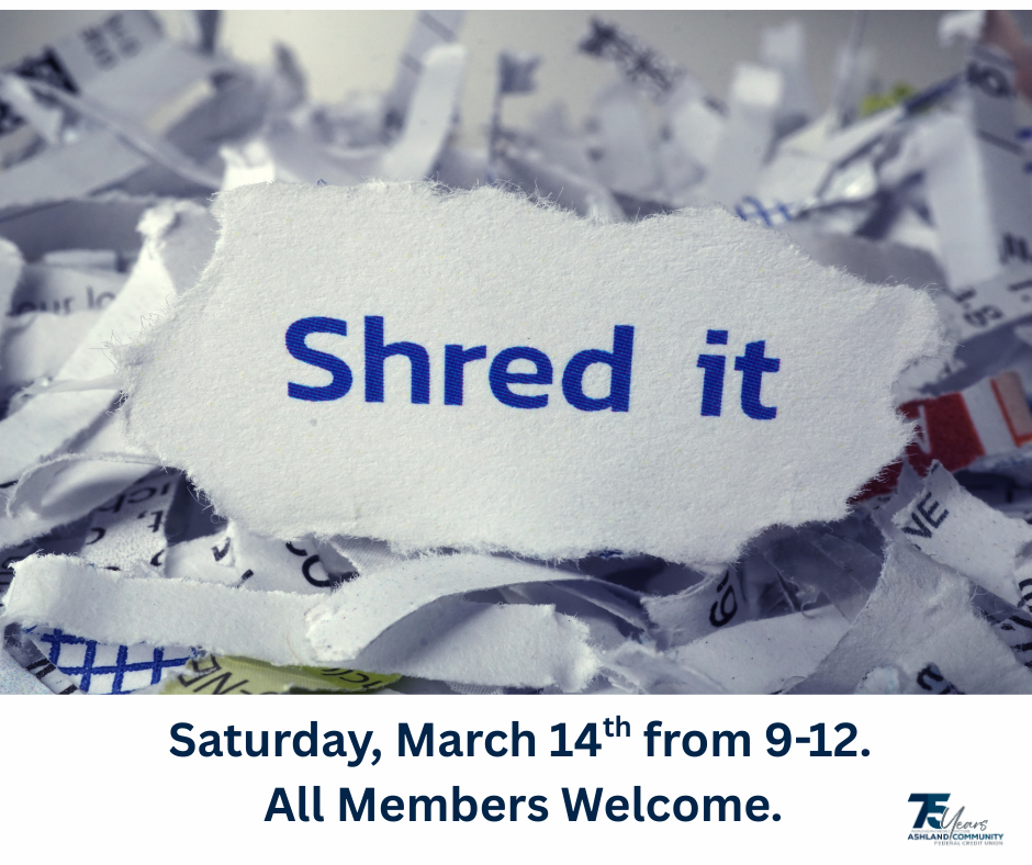 That’s why your Ashland Community Federal Credit Union is hosting a Community Shred-It Day to help members and neighbors safely dispose of sensitive documents.